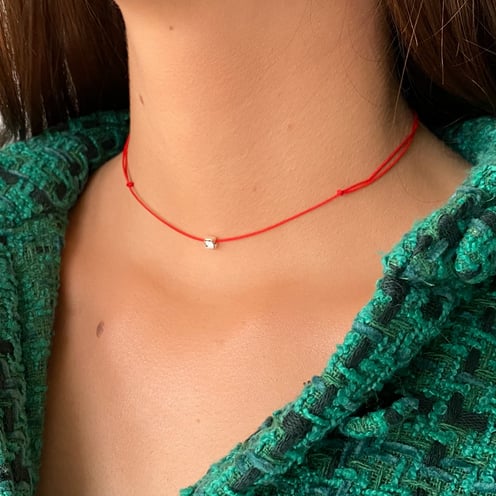 Kaklo papuošalai iš raudono siūlo yra ypatingai atrodantys ir prideda elegancijos bei švelnumo jūsų klientų išvaizdai